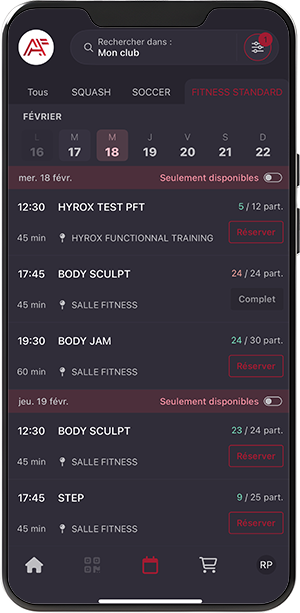 Planning cours arena fitness